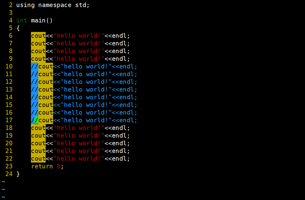 | ctrl+v、HJKL、shift i、//、Esc | 批量化注释 |