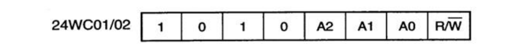 AT24C02 器件地址为 7 位,高 4 位固定为 1010,低 3 位由 A0/A1/A2 信 号线的电平决定。 因为传输地址或数据是以字节为单位传送的,当传送地址时,器件地址占 7 位,还有最后一位(最低位 R/W)用来选择读写方向,它与地址 无关。其格式如下: