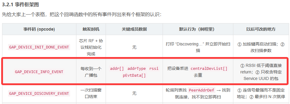 所以我们的数据处理可以在 GAP_DEVICE_INFO_EVENT 中进行。