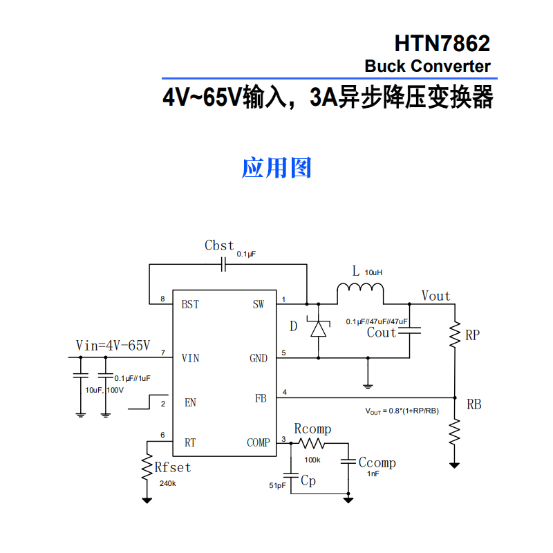 总而言之,HTN7862以4V至65V宽输入范围、3A稳定输出、高集成度低阻MOSFET、全负载高效率、灵活的参数配置以及全面的保护机制,精准匹配了工业、电信、汽车等多领域的电源设计需求。无论是从简化设计流程、提升能源效率,还是保障系统长期稳定运行的角度来看,HTN7862都展现出了卓越的性能实力,无疑是一款为复杂电源场景量身打造的高性能3A降压转换器。