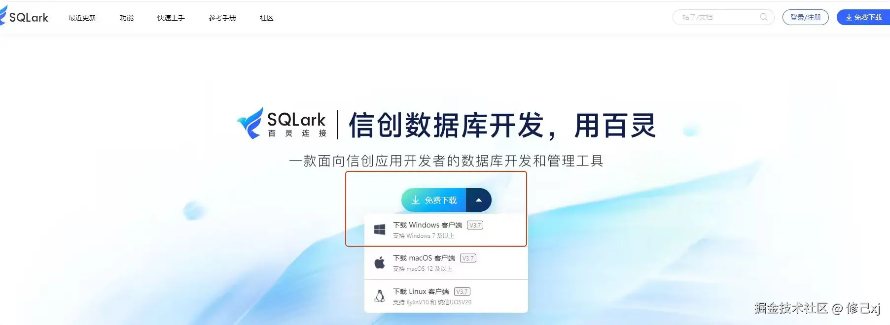 我们因为使用的是docker部署的数据库,所以无法使用达梦自带的数据库工具,我们连接的时候可以使用DBeaver或者``SQLark百灵连接, SQLark 连接使用有点与navicat相似,我使用的就是SQLark,以下是官网地址,需要的家人们也可以在官网去下载