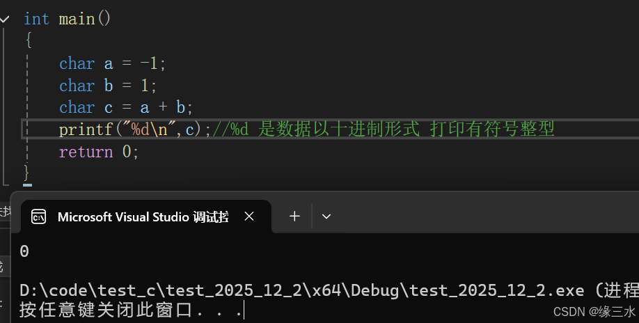 这里的a,b,c都是字符型,长度都为8比特位,1、-1都是整型32(比特位)需要截断才能存放进a,b中