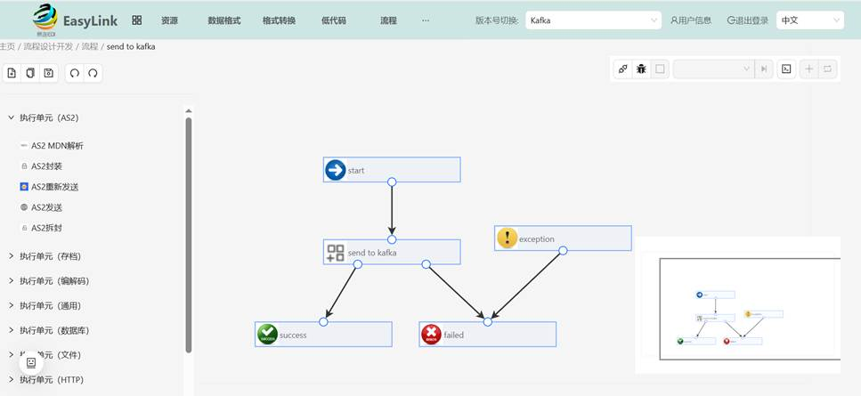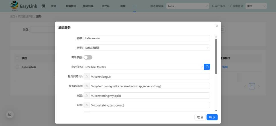开箱即用的适配器: EasyLink提供了内置的Kafka适配器,用户可以通过简单的图形化配置,轻松地将企业内部系统接口与Kafka Topic打通,极大降低了技术门槛。
