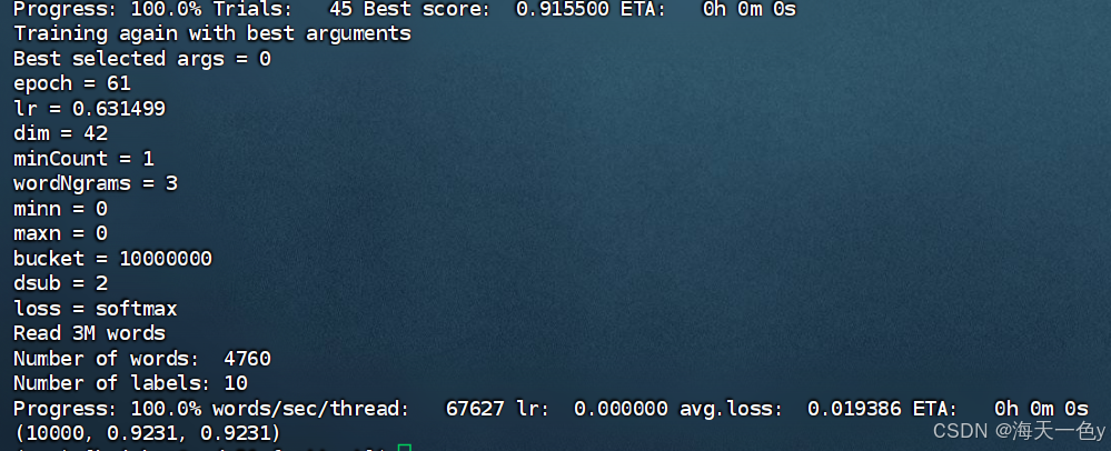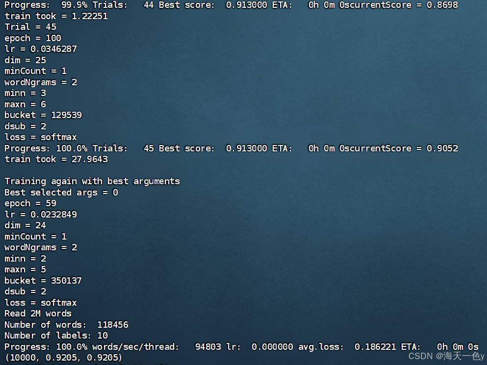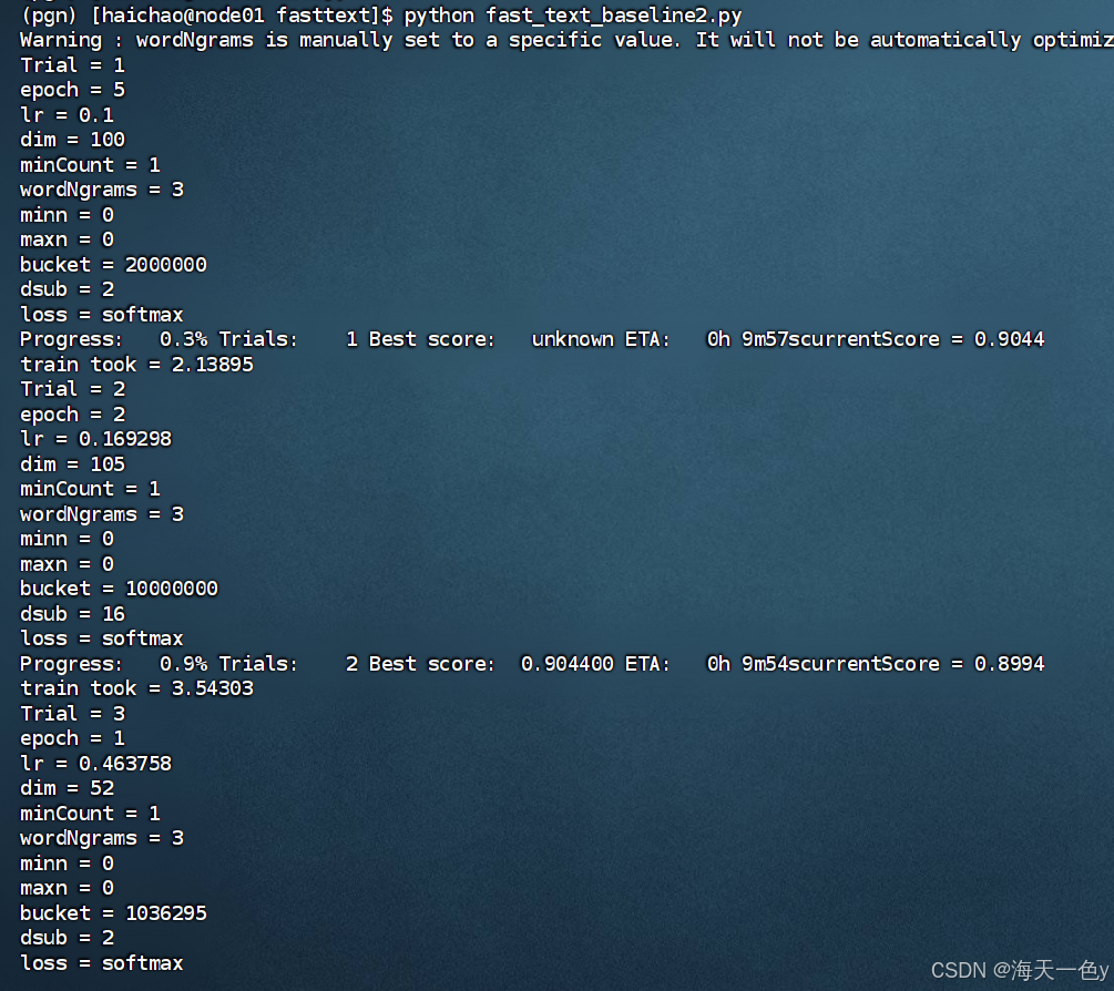 在真实的生产环境下, 对于fasttext模型一般不会采用费时费力的人工调参, 而都是用自动化最优参数搜索的模式。