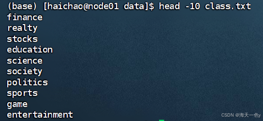 2.4 类别集合数据class.txt,共10条
