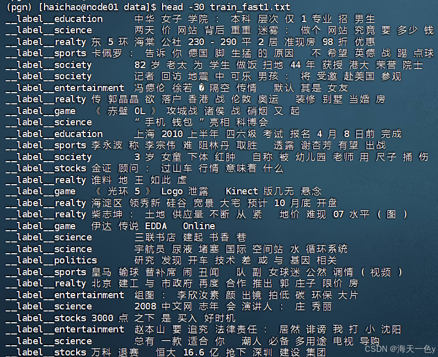 将数据转化成fasttext需要的数据格式