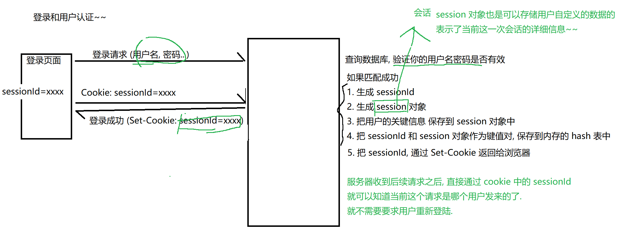会话:描述客户端和服务器之间的一种交互关系 假设一个朋友进去了 你去探视 进行探视的过程 就可以称为是一次会话 你一次会话过程就会涉及到一些关键信息 (你是谁 你探视谁 你和他聊了啥)