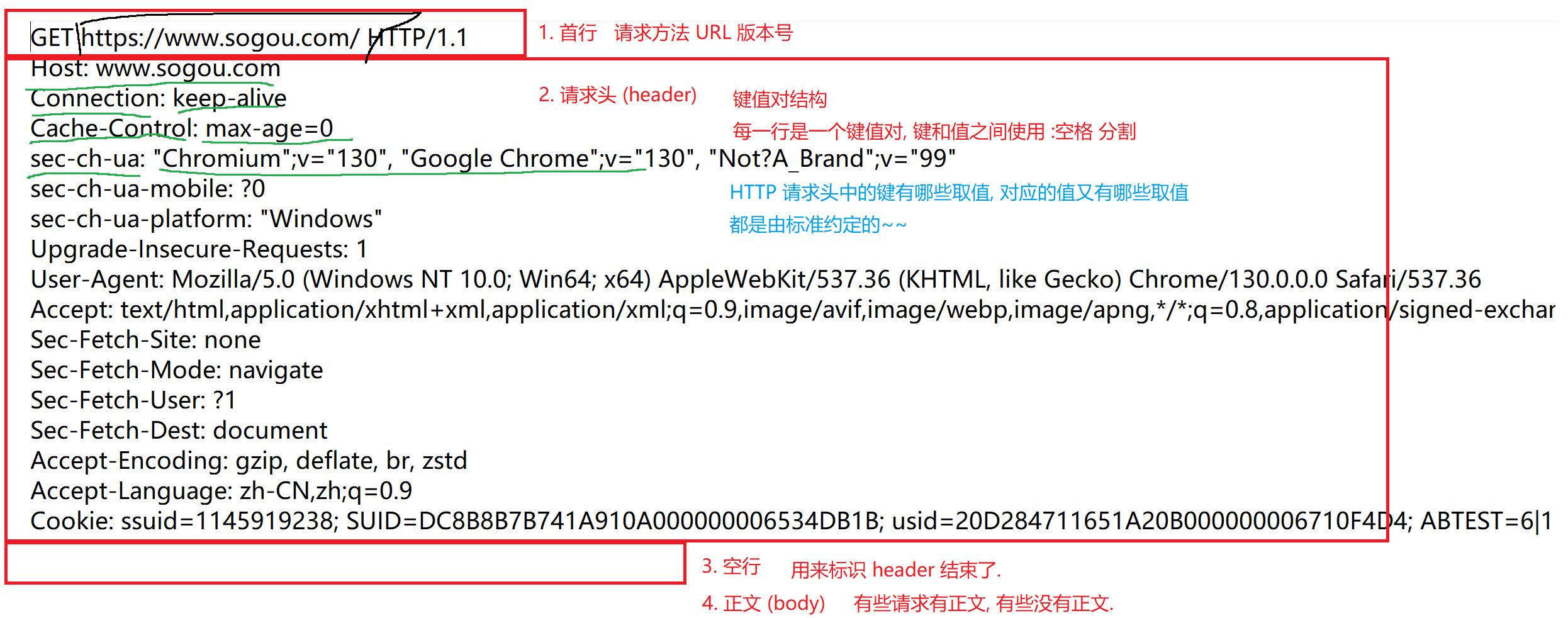 http协议 传输层这里基于TCP实现的(版本号<=2.0) 所谓的HTTP协议,就是把字符串构造成HTTP约定的格式 就是下面的这些内容组成的字符串