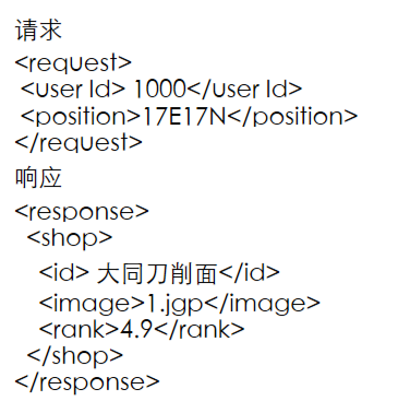 例如 用户id,用户的位置\n 一个响应由多行构成 每一行是一个商家 每个商家中包含一些信息