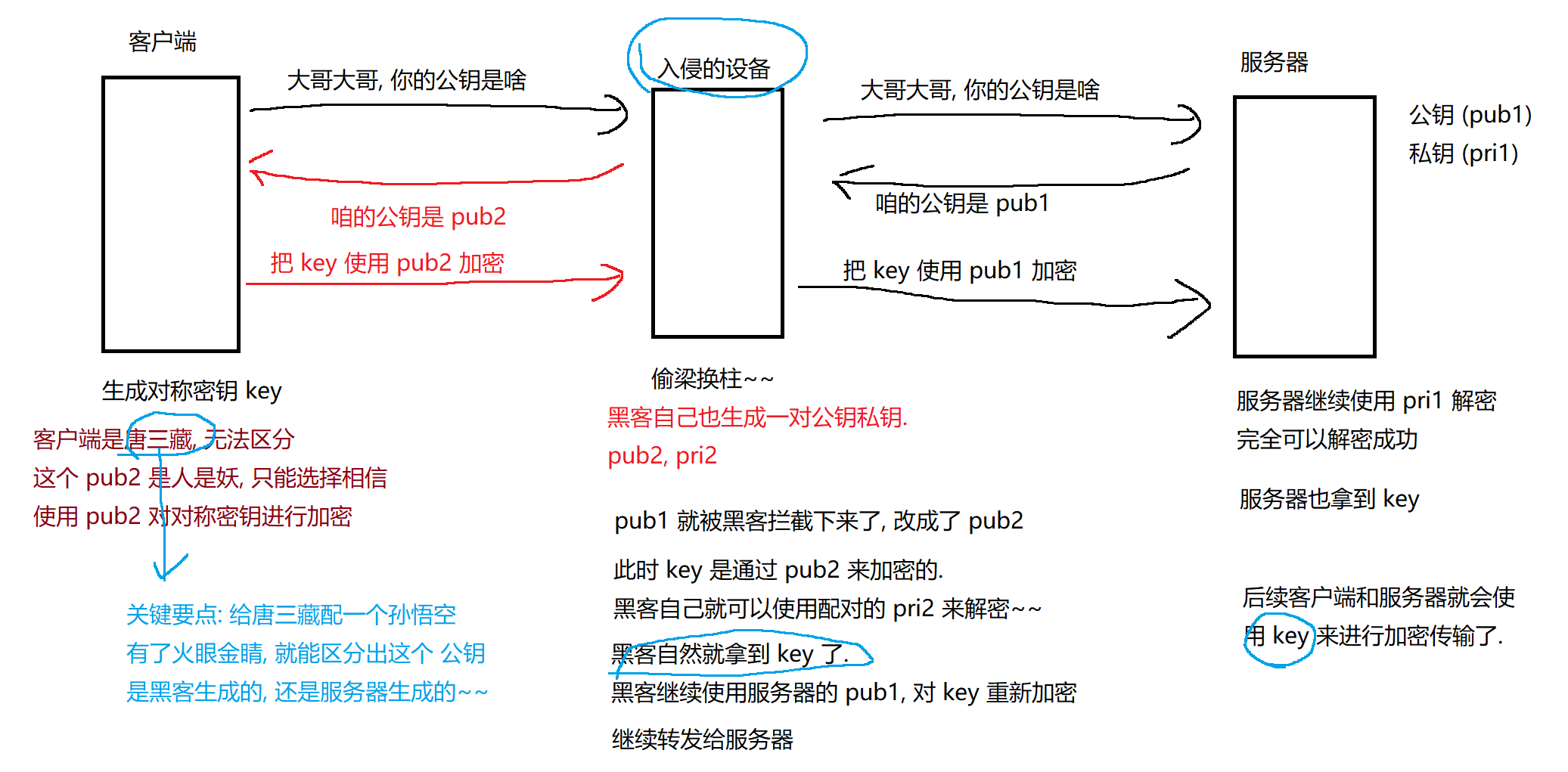 中间人攻击 只是黑客的一种攻击手段而已 黑客的攻击手段还有很多~