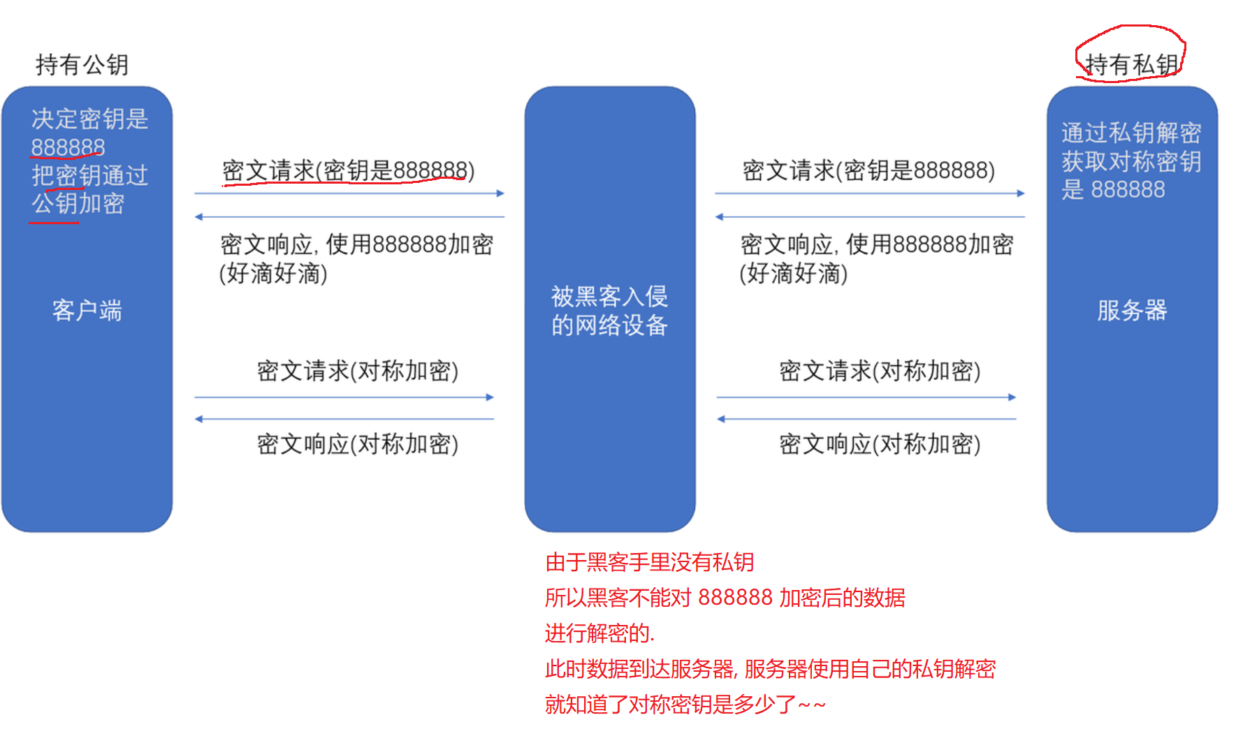 黑客能否侵入服务器 把私钥拿到呢? 理论上是可行的,实际上 难度 要比入侵网络设备 更难~~成本更高 苍蝇不叮无缝的蛋 黑客入侵 都是需要借助一些"现有的漏洞"