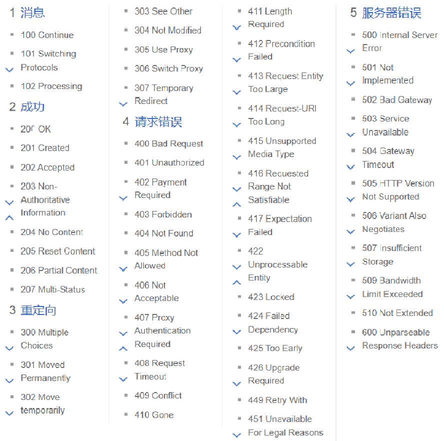 每个开头都是一类状态码 有相似的功能 下面我们列举几个