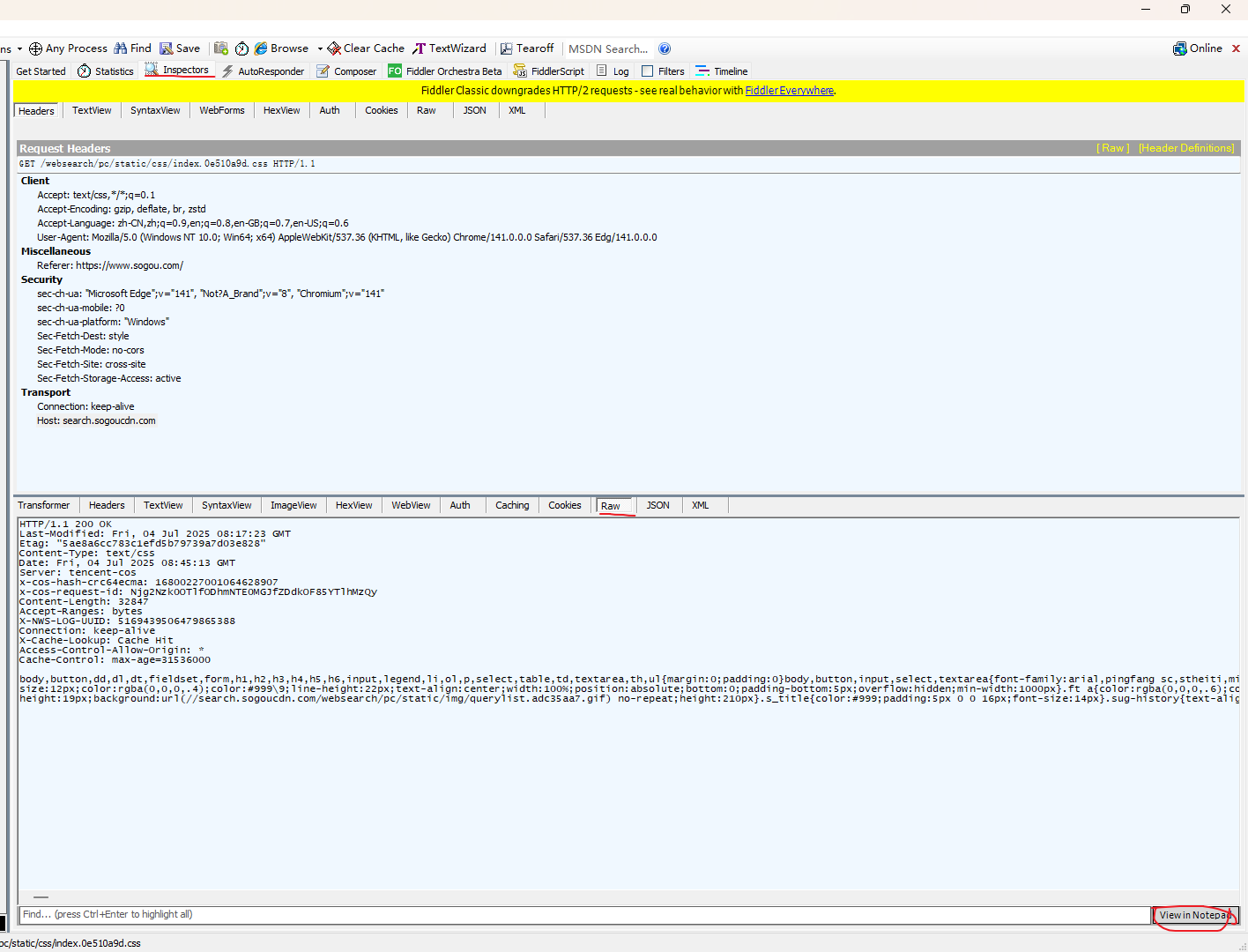 蓝色的部分是https请求的消息 点击右下角那个地方 能用记事本打开 这样更加的方便看