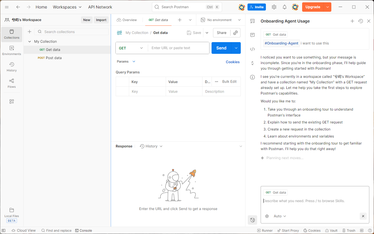 创建一个workspace 然后构建 这个工具能帮你构造http 点击对应的地方就是