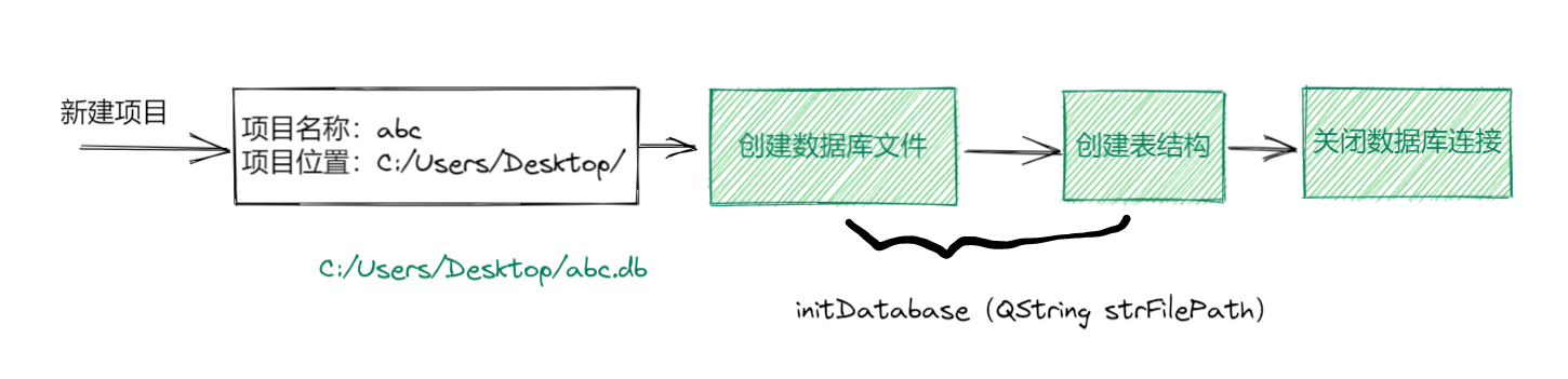 利用SQLite3创建数据库的过程如下图,①创建数据库文件;②创建表结构;③关闭数据库连接; 其中数据库文件的路径是我们在创建项目的对话框中设置的路径。