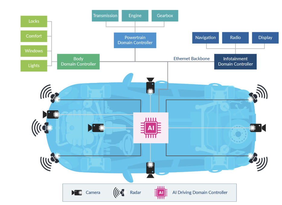 - 带有NPU/TPU的汽车级硅,例如Qualcomm Snapdragon Ride、NVIDIA Orin,平衡了 TOPS/Watt 和 ASIL-D功能安全。