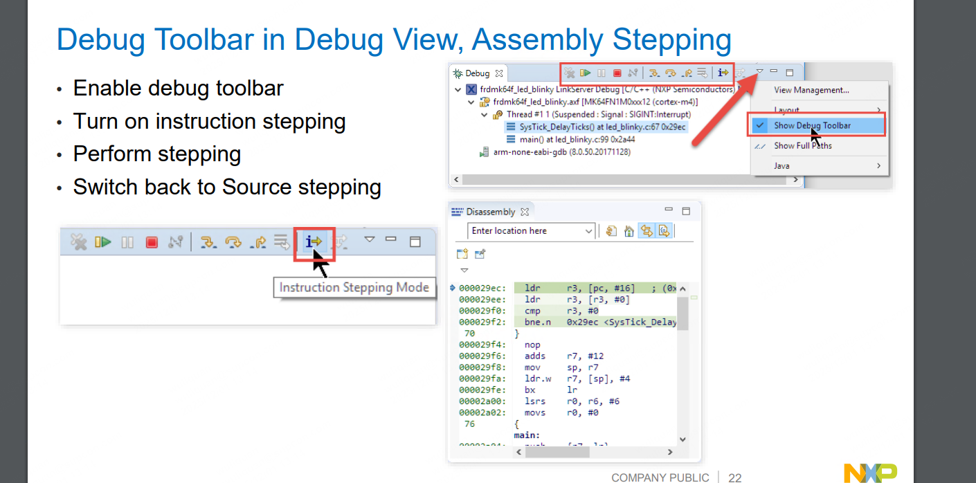 方法如下:在Debug页面使能Instructing Stepping Mod