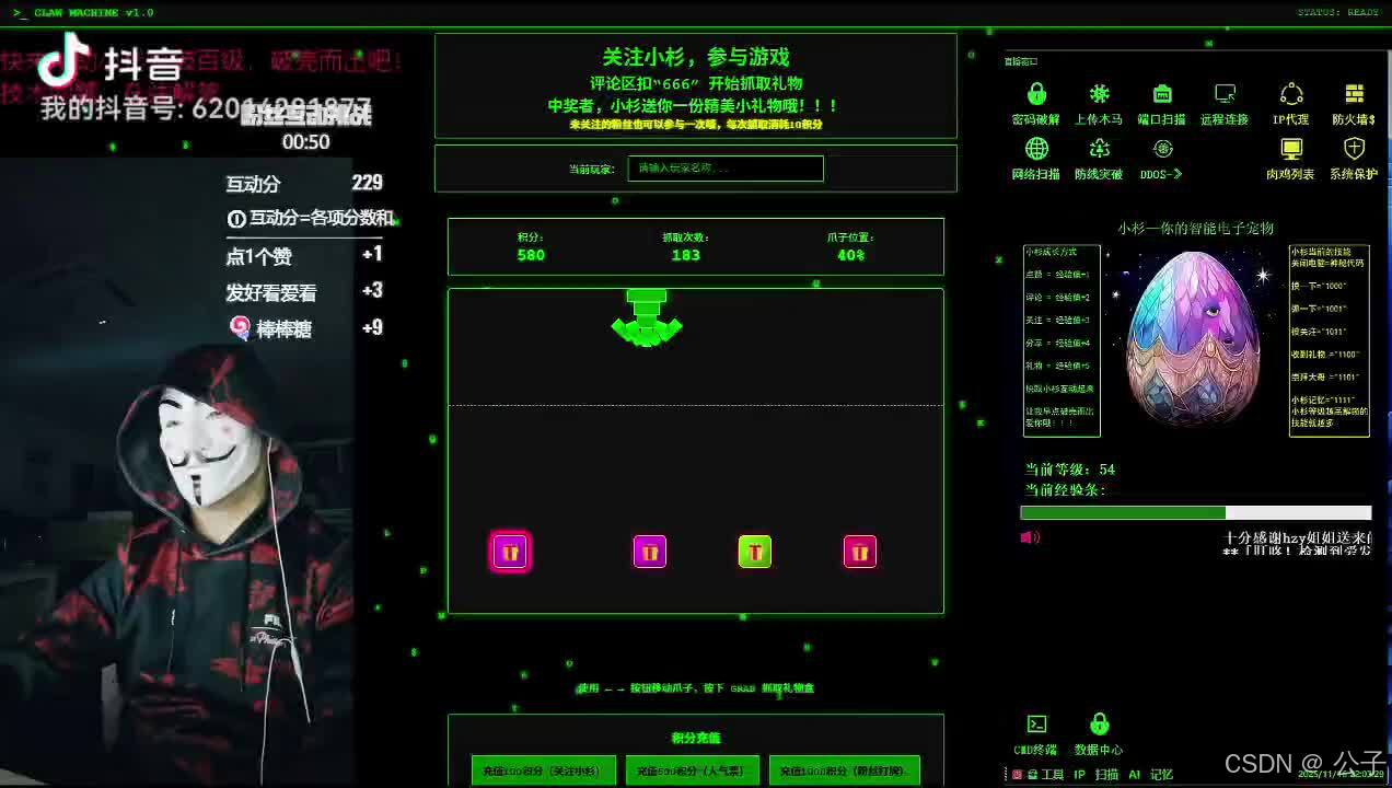 本系统是一套基于抖音平台的无人直播解决方案,结合了黑客技术元素和人工智能交互功能。系统主要包含以下核心模块: