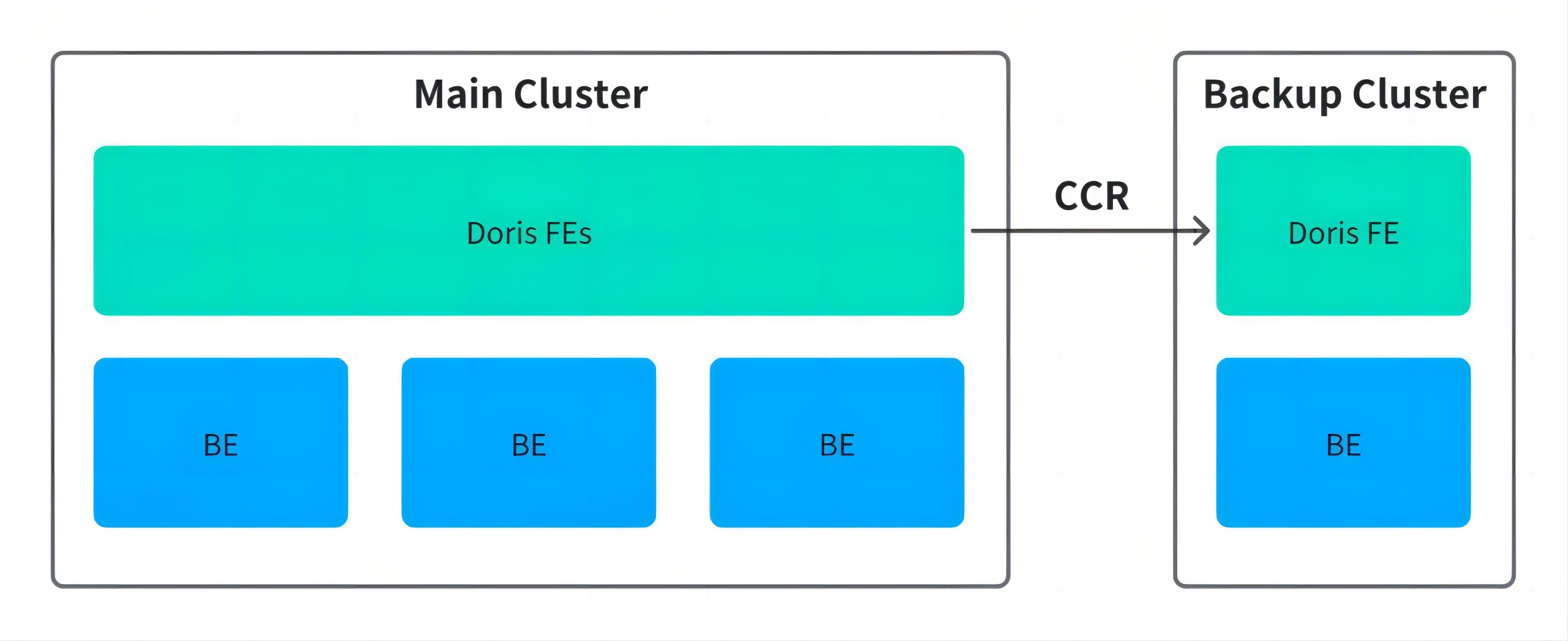 2023 年海外机房火灾事件暴露了存算一体架构的脆弱性,虽然数据最终恢复,但也促使团队重新审视数据高可用策略。针对 Doris 2.x 的高可用方案,团队曾评估两种路径: