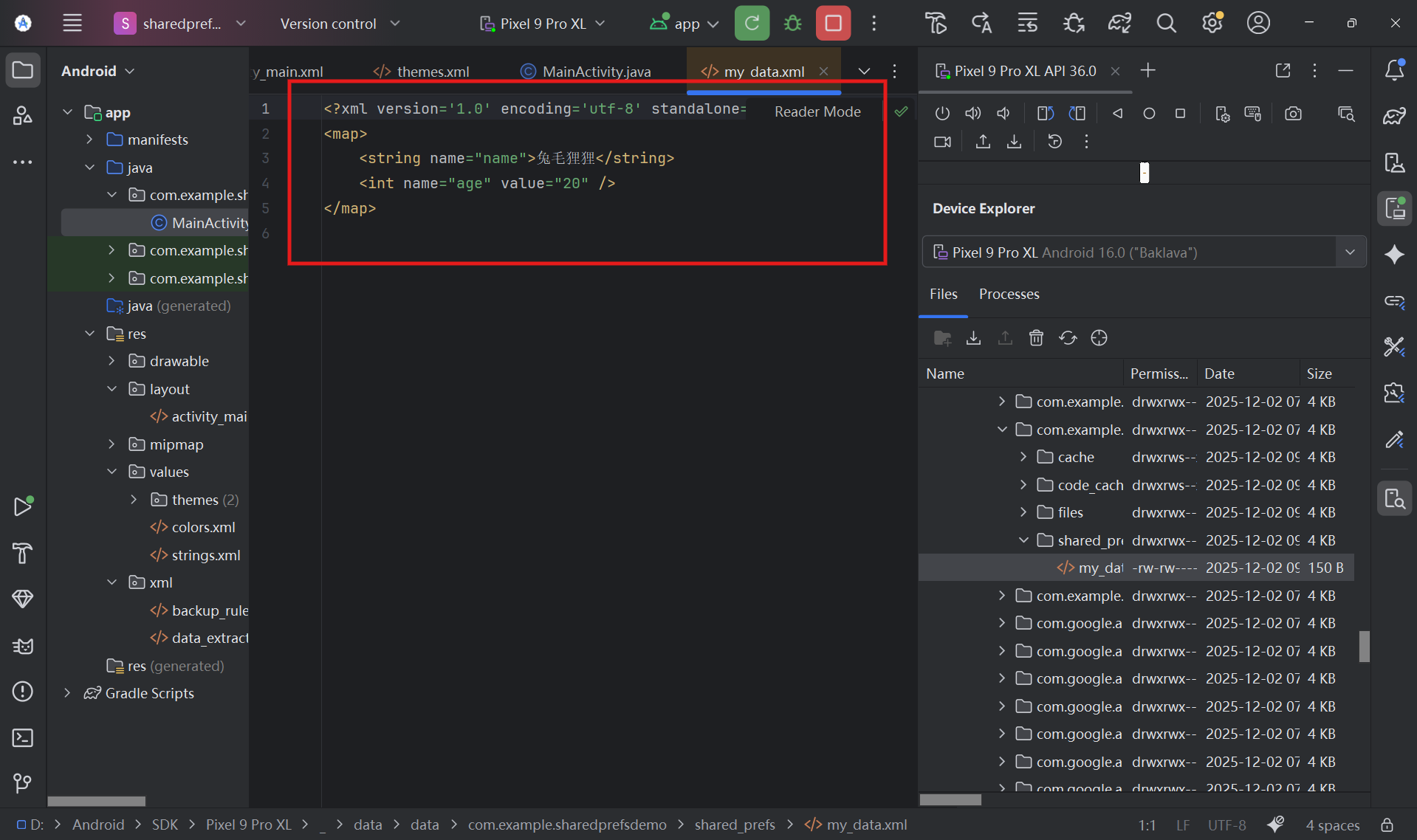 🧠第五步:查看SharedPreferences自动生成的XML文件