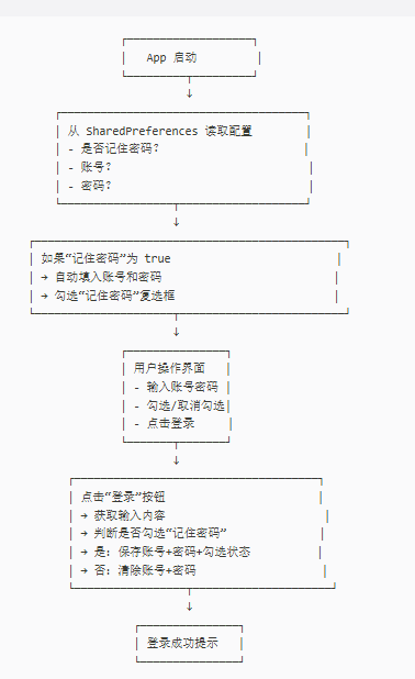| 重启APP | 自动填入账号密码,复选框勾选 |