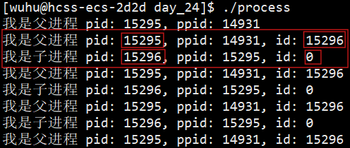 printf("我是父进程 pid: %d, ppid: %d, id: %d\n", getpid(), getppid(), id);