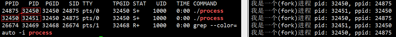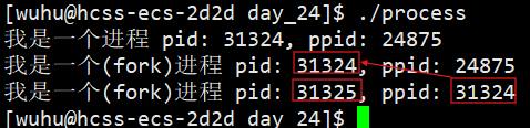 printf("我是一个(fork)进程 pid: %d, ppid: %d\n", getpid(), getppid());