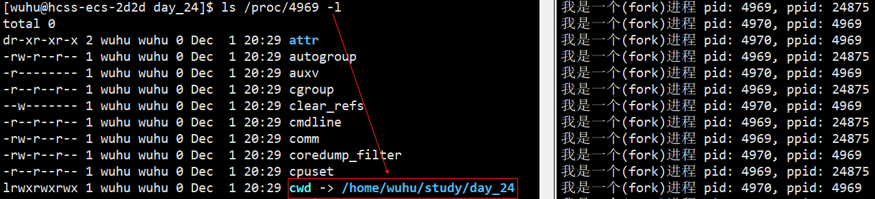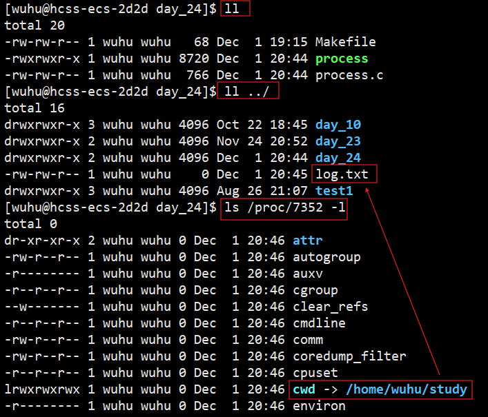 其中在对应的进程的目录文件中,存在一个cwd,这是一个符号链接,指向进程的当前工作目录 。