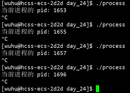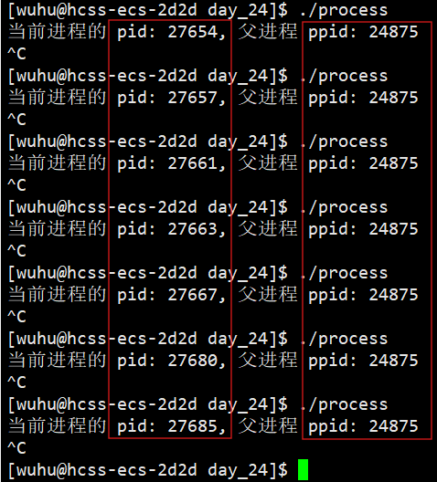 此外当你不断执行程序时,你会发现对应的PID是变化的。