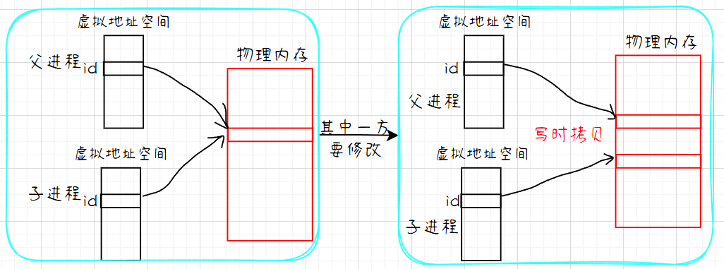 fork()刚完成时,父子进程的id变量确实指向同一块物理内存。 - 触发分离(写时) :当任何一个进程试图修改这个变量时,操作系统才会为修改方创建独立的副本。(