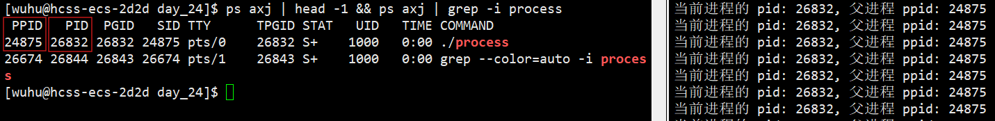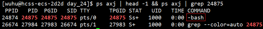 我们直接进行查询:ps axj | head -1 && ps axj | grep 24875。
