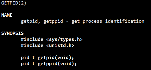 一个进程如何获取自己的标识符呢?我们知道标识符是task_struct内部的属性值,操作系统肯定不会让你直接访问的。所以想要访问它,操作系统就必须给我们提供一个系统调用接口,来获取自己的PID。
