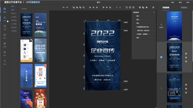 零代码H5在线设计工具,提供丰富的可视化组件、动效及多媒体支持;内置多行业模版,覆盖品牌传播、会议邀请、人才招聘等营销场景,替换图文即可生成专属H5,助力企业高效数字化营销。