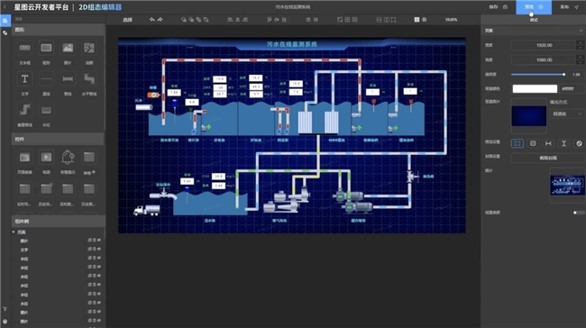 拖拽式搭建企业级Web应用,基于数字地球+数字孪生可视化双核引擎,可实现各类宏-中-微观可视化应用的全流程开发。