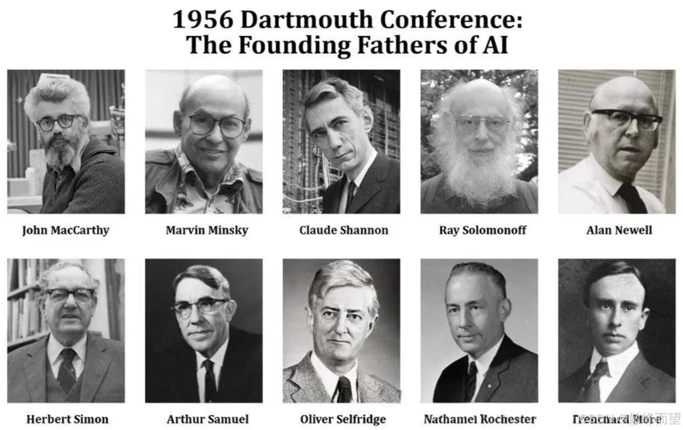 - 1956 年,在美国达特茅斯学院汇聚了那个时代最聪明的一批人,他们坐在一起开了个会,会议主题是"试图让机器精确模拟学习或其他智能行为",该次会议也被称作"AI的宪法会议",约翰·麦卡锡首次提出"人工智能"一词。