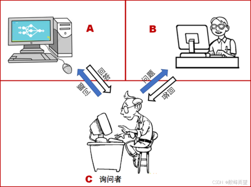 ◦ 游戏目标:测试者的任务就是通过一系列提问和对话,最终判断出哪个是真的人,哪个是机器。