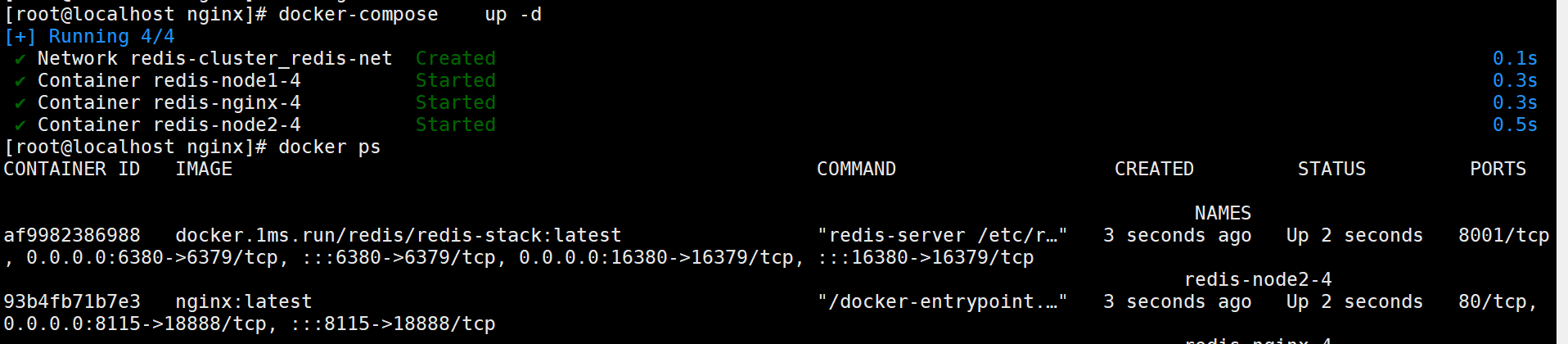 cd /data/redis-cluster && docker-compose up -d