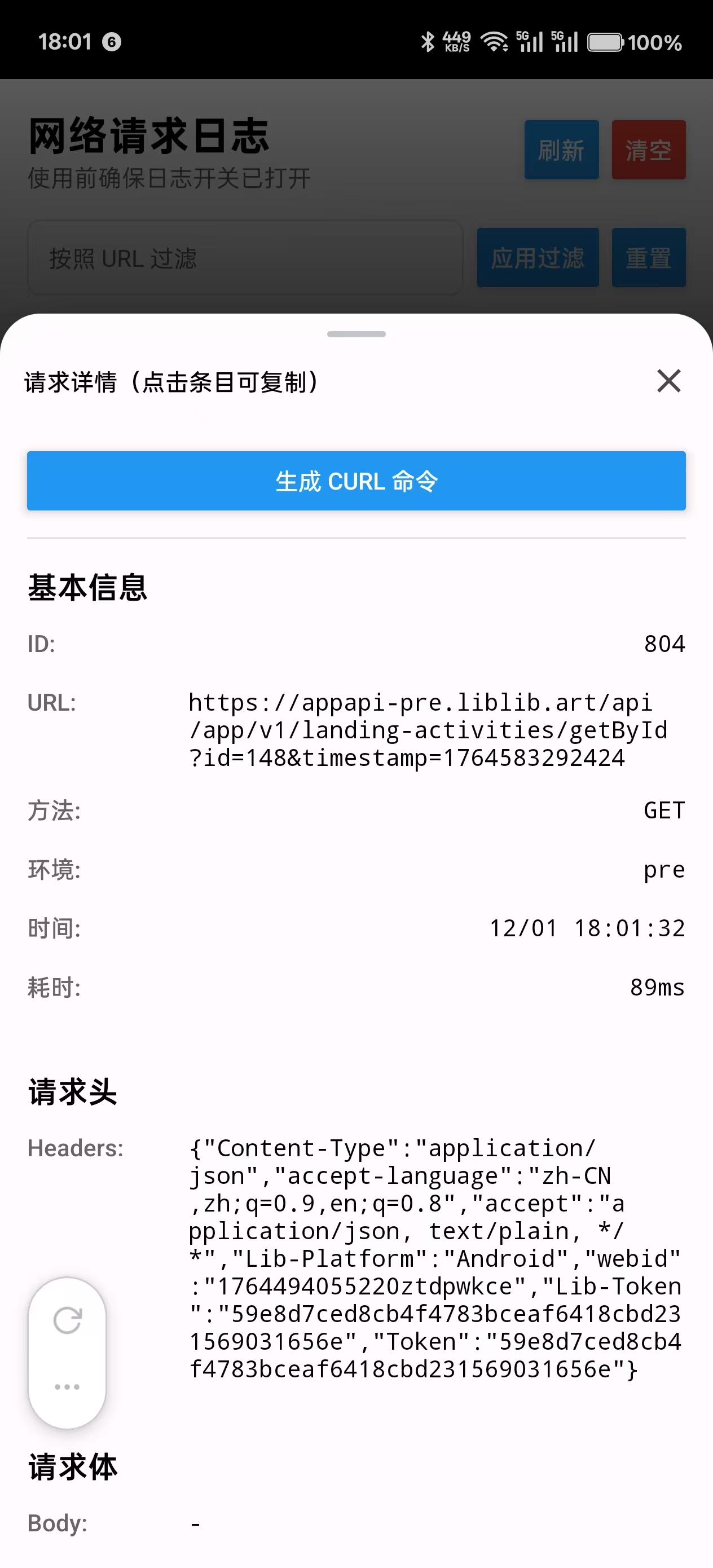 无法在应用内直接查看请求详情