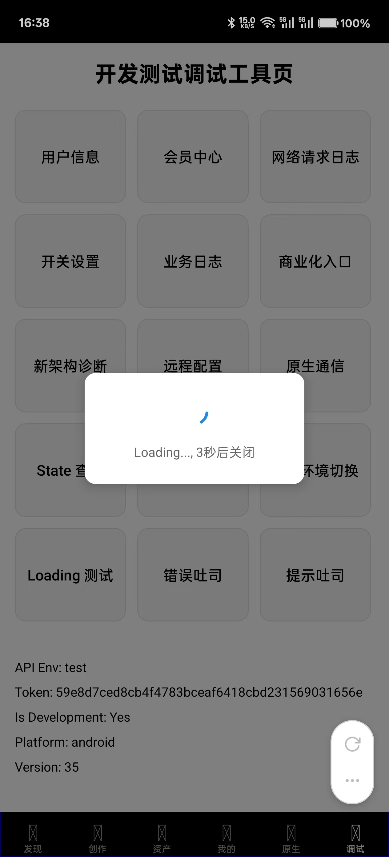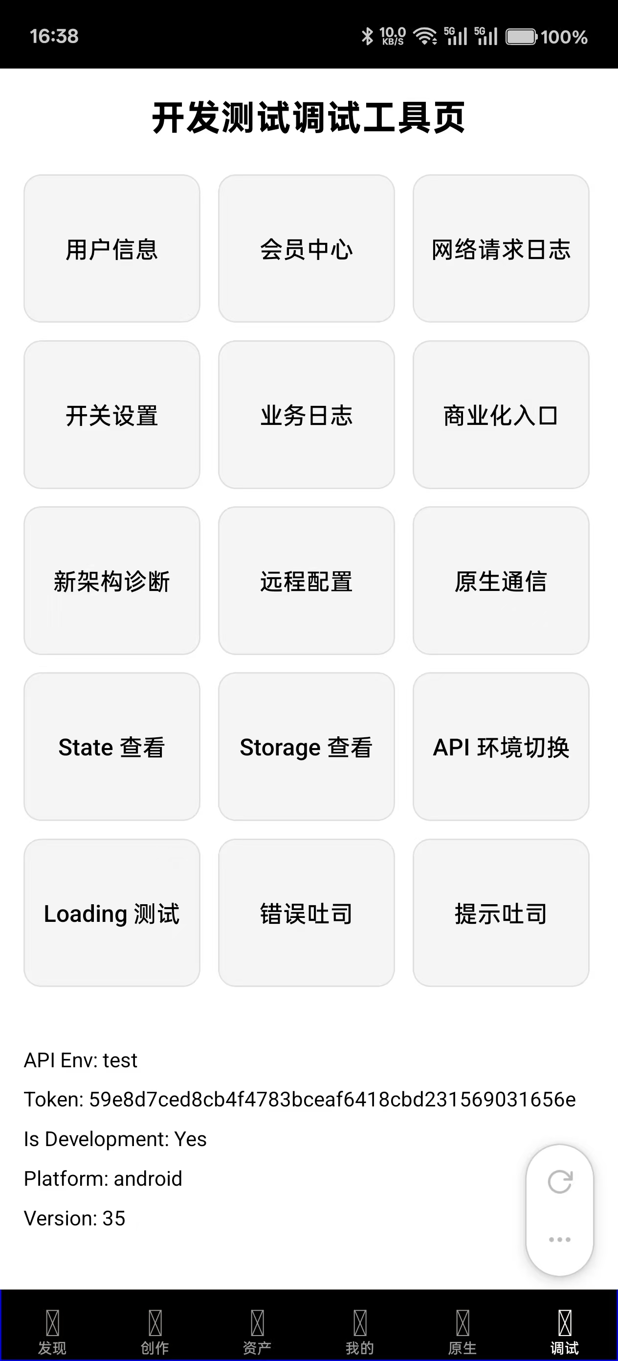 在 React Native 应用开发中,构建一套完善的开发调试基础设施能够显著提升开发效率、加快问题排查速度,并改善团队协作体验。本文将详细介绍一个实际项目中实现的 14 个核心调试功能模块,涵盖用户管理、日志系统、状态调试、原生通信、UI 组件测试等多个维度。如下图所示: