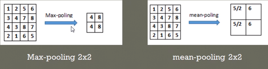 在 4∗4 的数字矩阵里,以步长 2∗2 选取区域,比如上左将区域[1,2,3,4]中最大的值4池化输出;上右将区域[1,2,3,4]中平均值5/2池化输出。