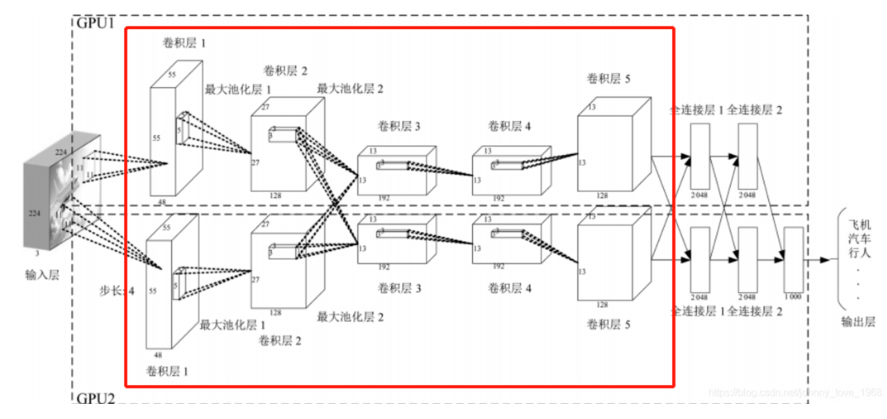 下面红框框起来的部分便可以理解为一个滤波器,即带着一组固定权重的神经元。多个滤波器叠加便成了卷积层。