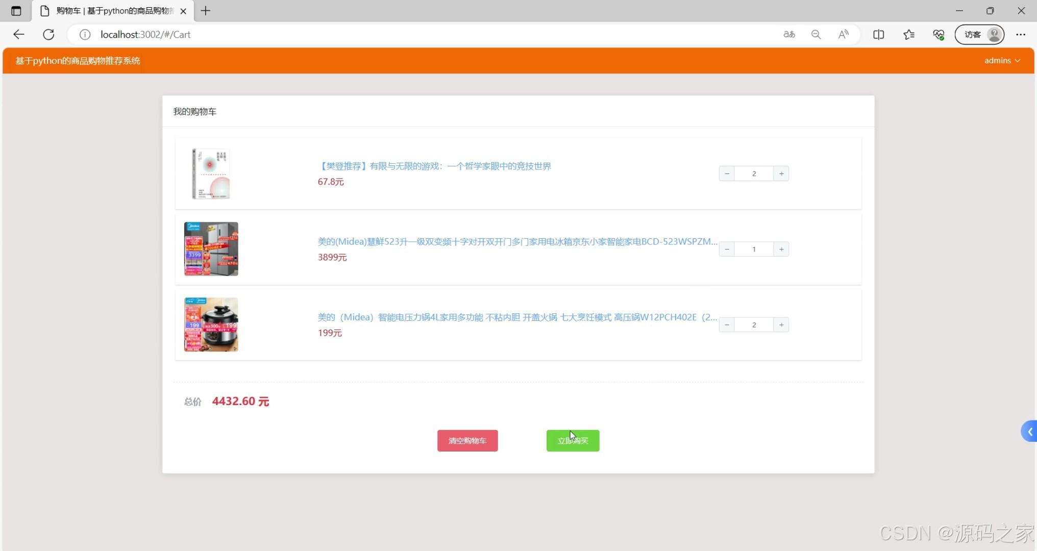 - 研究意义:技术层面,实现前后端分离(Django+Vue3)与爬虫、推荐算法的深度整合,构建完整电商推荐链路;应用层面,为用户提供"精准推荐+便捷购物"体验,为平台提升商业价值;学习层面,适合作为全栈+推荐算法方向毕业设计,覆盖企业级技术栈与业务场景。