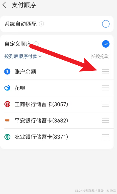 按住右边划动区,就可以上下拖动顺序