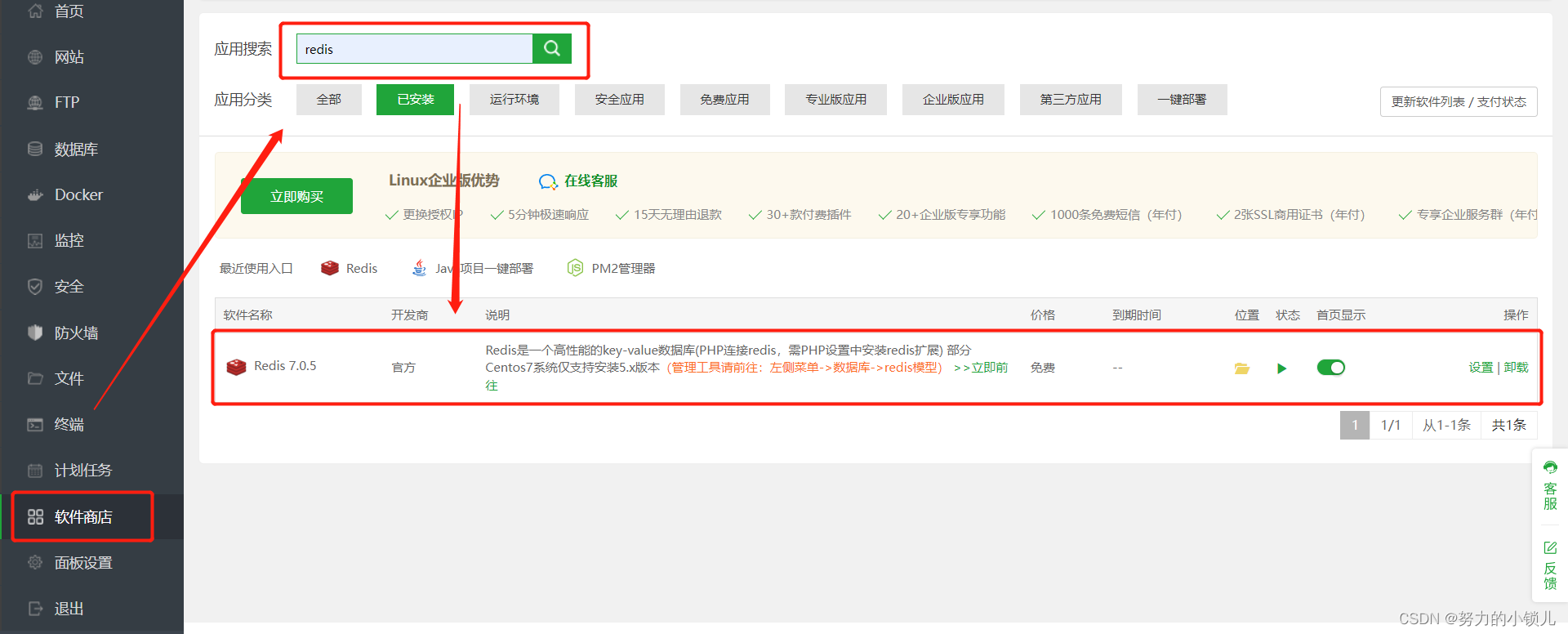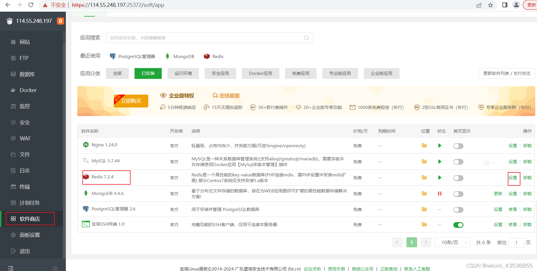 步骤:宝塔面板 ------> 应用搜索 ------> redis ------> 安装即可