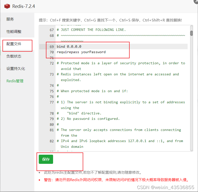 配置修改,这个就是Redis的配置文件了,可以根据自己的业务需求,进行更改