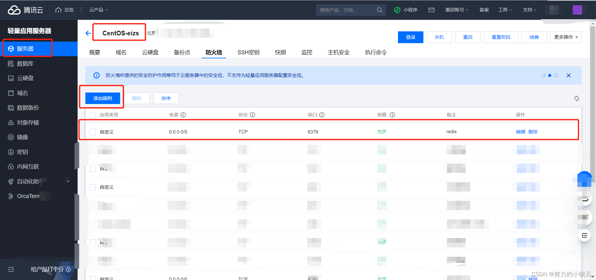 3.服务器:打开自己的控制台 ------> 添加规则 ------> 放行 Redis 对应的 6379 端口