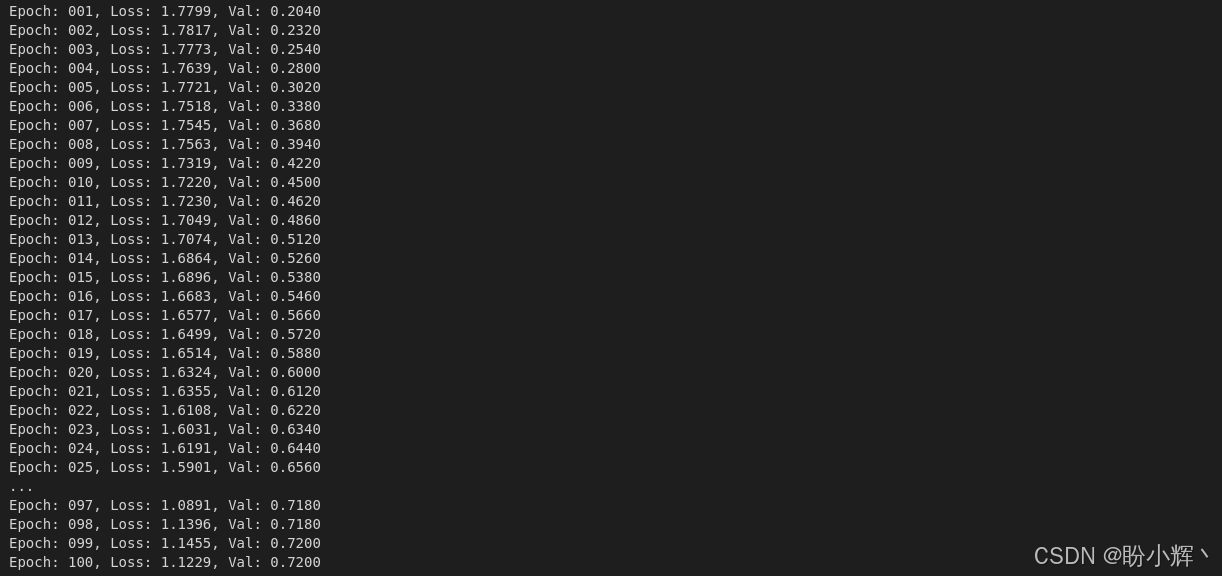 (1) 在定义优化器、损失函数以及模型训练和评估流程后,训练 GAT 模型 100 个 epoch: