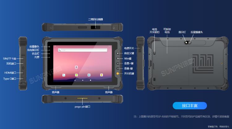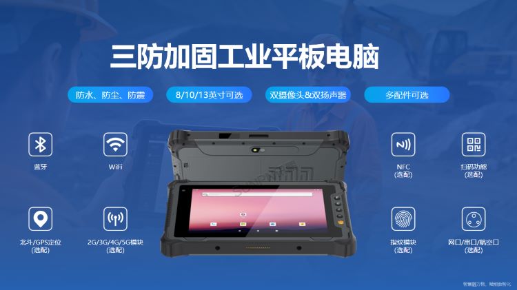 三防手持平板支持丰富的接口和模块化选配,便于与现有系统集成: