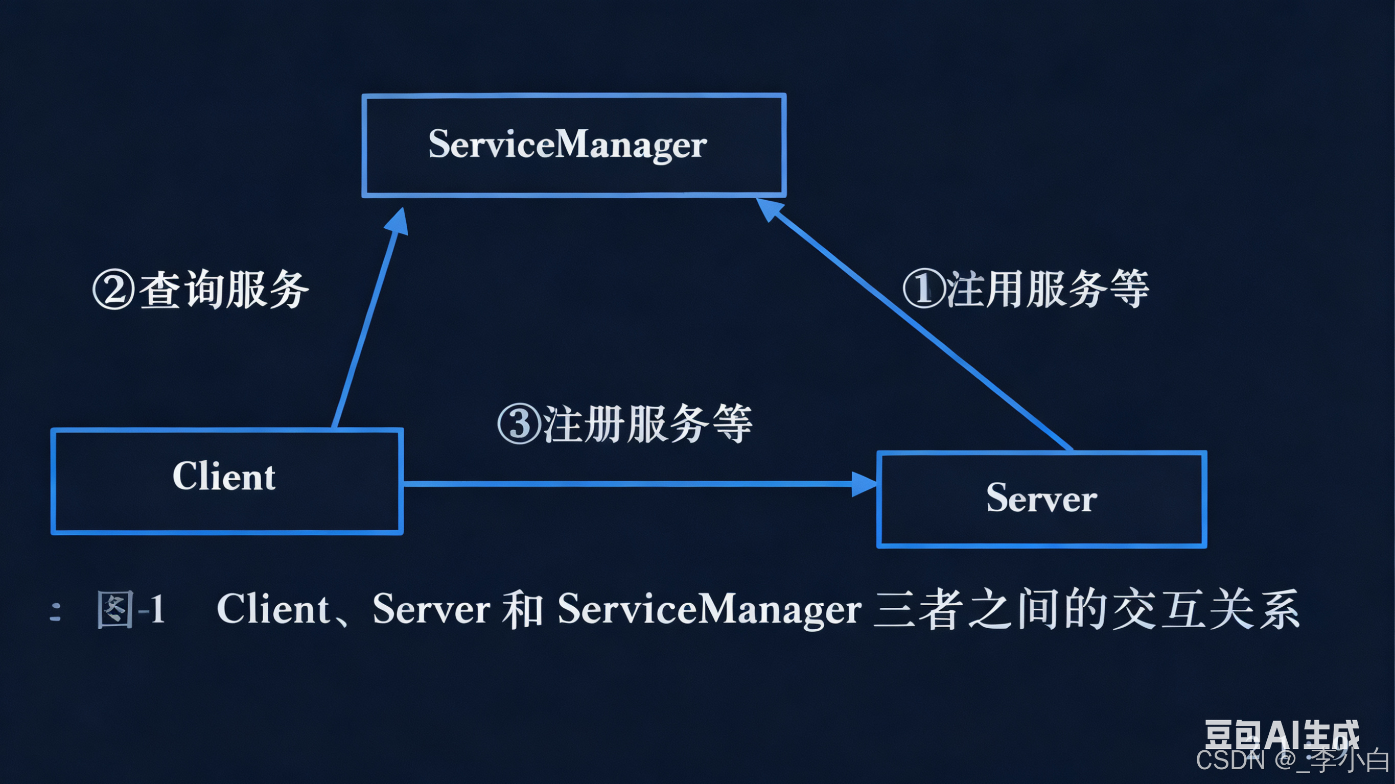 servicemanager进程,是系统级"服务注册表",负责存储"服务名-Binder代理"的映射关系。 - Server:服务提供者(如ActivityManagerService、WindowManagerService),通过Binder对外暴露功能。