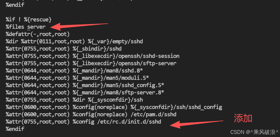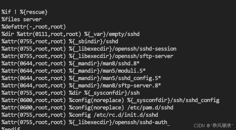 解决:找到openssh.spec中%files server部分的内容